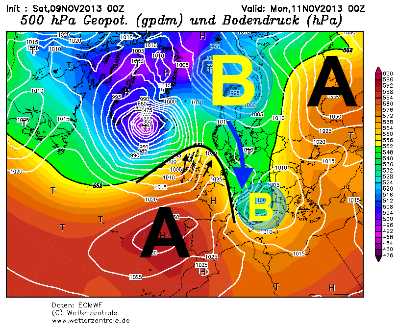Nei giorni seguenti una rimonta anticiclonica sull’Europa centro-occidentale produrrà un generale miglioramento in linea con la tradizionale Estate di San Martino, ma la tregua avrà vita breve..