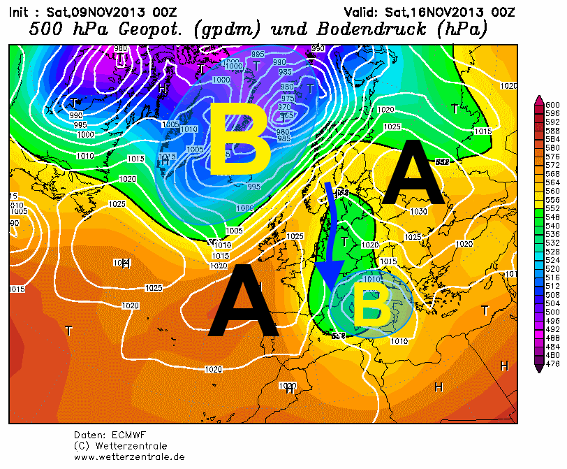 Nel corso di giovedì 14, mentre la nostra provincia sarà ancora illuminata dal sole novembrino, un imponente anticiclone andrà espandendosi dalle Azzorre all’Islanda. Aria artica marittima, in scorrimento lungo il bordo orientale dell’area anticiclonica, muoverà velocemente verso l’arco alpino.