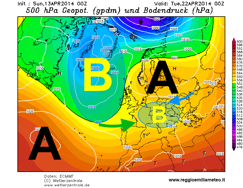 Nel fine settimana pasquale, tuttavia, al graduale rinforzo dei due anticicloni alle latitudini maggiori (uno sulla Russia, l’altro sulle isole britanniche), si contrapporrà un’ampia circolazione depressionaria, in approfondimento fra il Mediterraneo e i Balcani: se la tendenza riceverà conferme, assisteremo a un graduale peggioramento, con possibilità di precipitazioni sull’Italia e sulla nostra provincia, in un contesto spiccatamente variabile. Specifichiamo comunque che si tratta di una previsione che, come tutte le tendenze a 6-7 giorni, necessita di approfondimenti: motivo per il quale invitiamo a seguire i nostri aggiornamenti quotidiani.