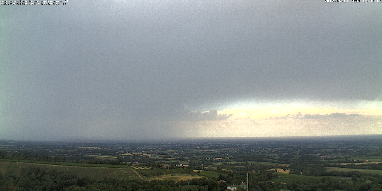 I temporali si propagano alla pianura raggiungendo Reggio Emilia. Tra le 13.00 e le 15.00 il capoluogo è interessato da raffiche di vento a 40km/h e rovesci (accumulo di 8.4 mm). La nostra webcam immortala immagini suggestive che ora potrete ammirare nel video dell'evento (click per accedete alla pagina Top Video):