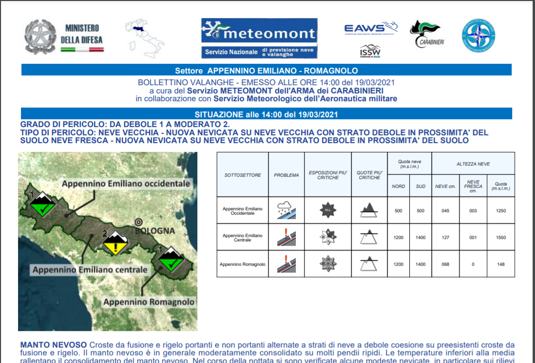 In allegato il bollettino valanghe di oggi venerdì 19 marzo (click sull'immagine) e la guida alla sua lettura.