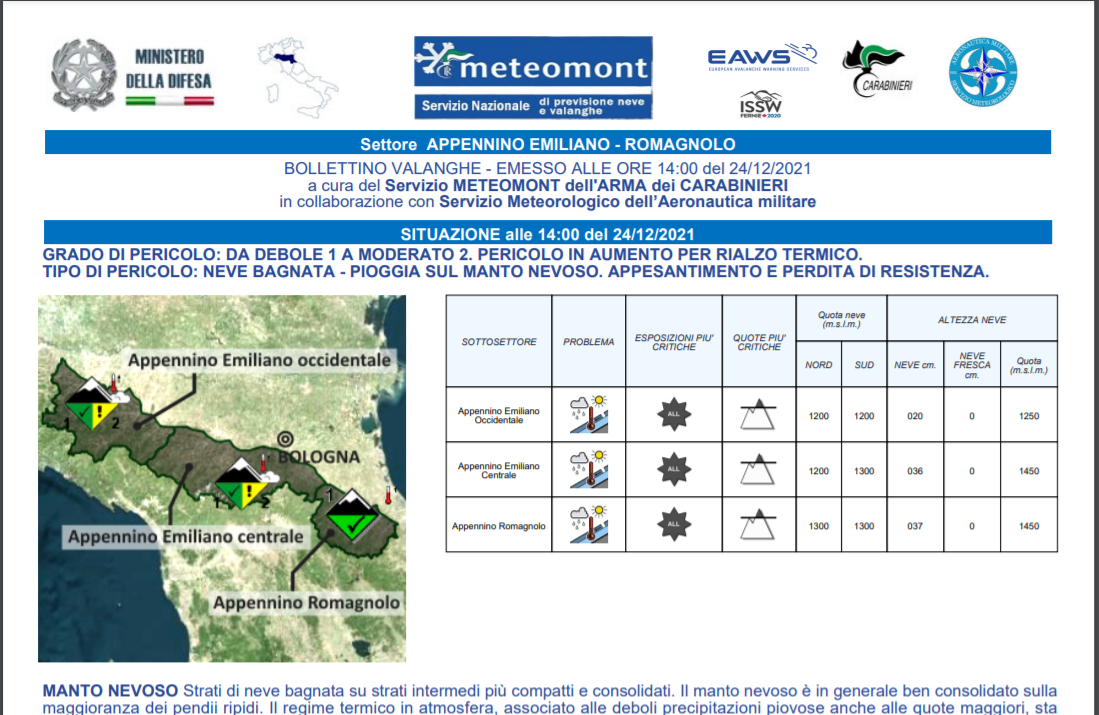 In allegato il bollettino valanghe di oggi venerdì 24 dicembre (click sull'immagine) e la guida alla sua lettura.