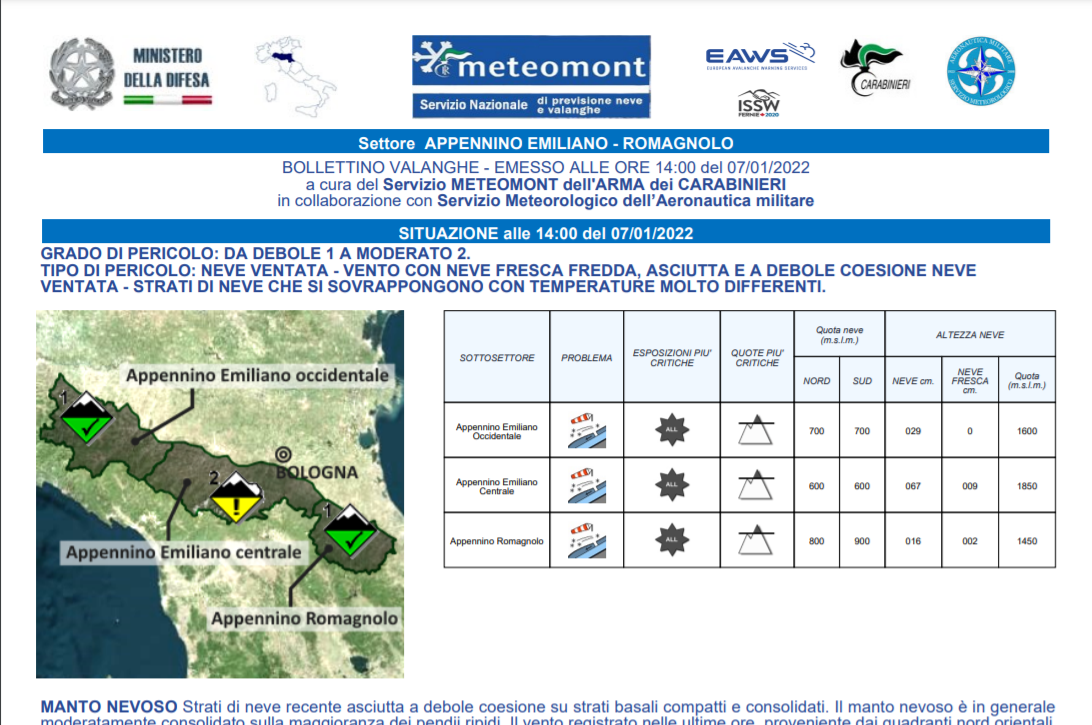 Importante: il bollettino valanghe deve essere letto prima di ogni escursione in quota. Raccomandiamo di avere un equipaggiamento completo di ramponi, piccozza, casco, oltre che del dispositivo Artva con pala e sonda.