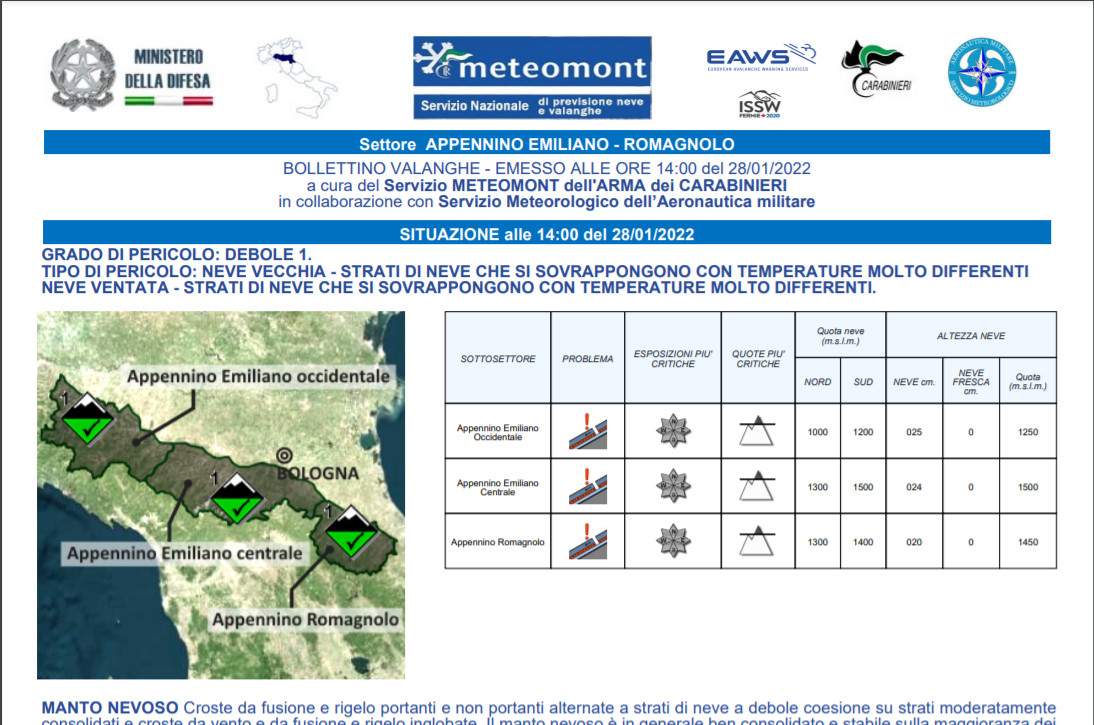 In allegato il bollettino valanghe di oggi venerdì 28 gennaio (click sull'immagine) e la guida alla sua lettura.