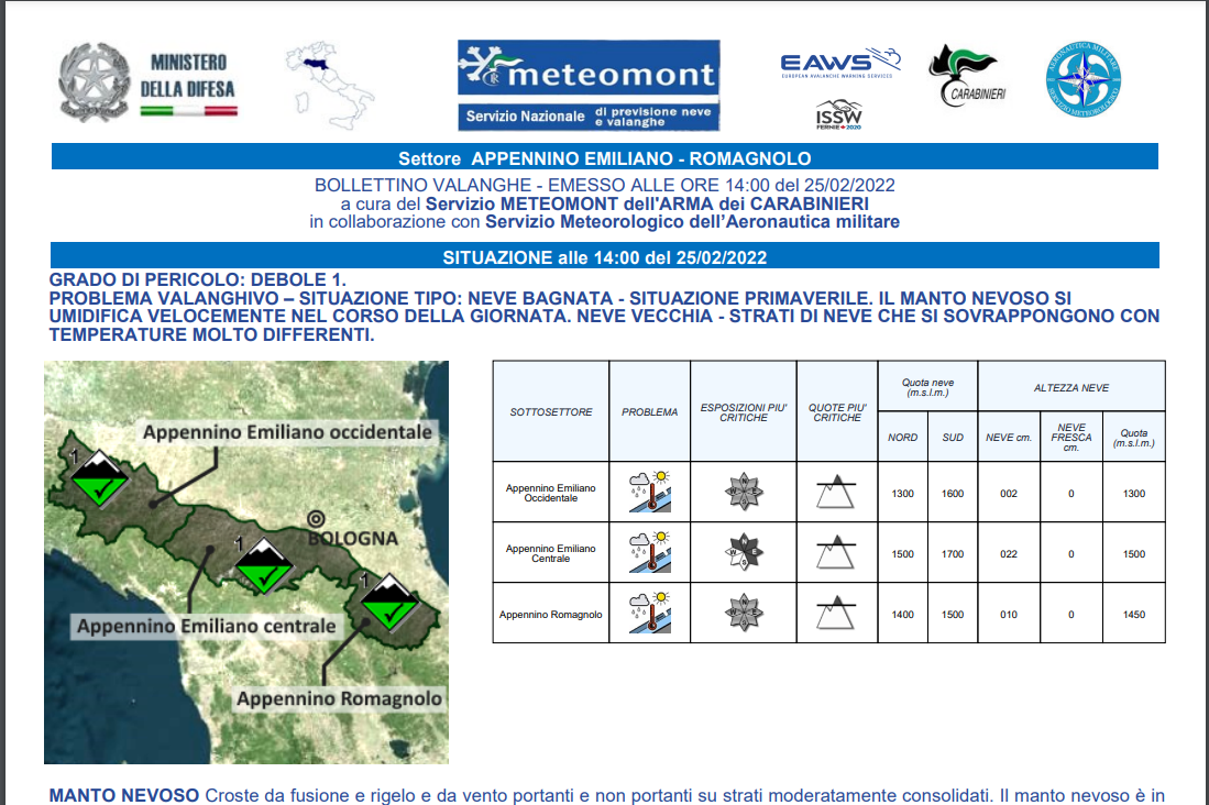 In allegato il bollettino valanghe di oggi venerdì 25 febbraio (click sull'immagine) e la guida alla sua lettura.