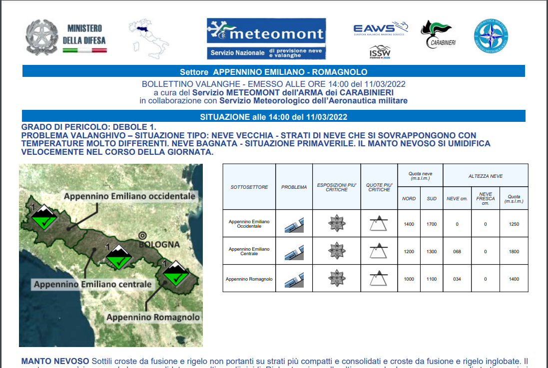 In allegato il bollettino valanghe di oggi venerdì 11 marzo (click sull'immagine) e la guida alla sua lettura.