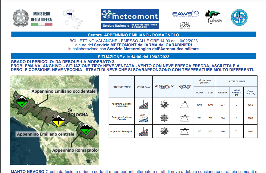 In allegato il bollettino valanghe di oggi venerdi' 10 febbraio (click sull'immagine) e la guida alla sua lettura.