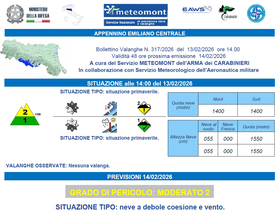 In allegato il bollettino valanghe di oggi venerdì 13 febbraio (click sull'immagine) e la guida alla sua lettura.