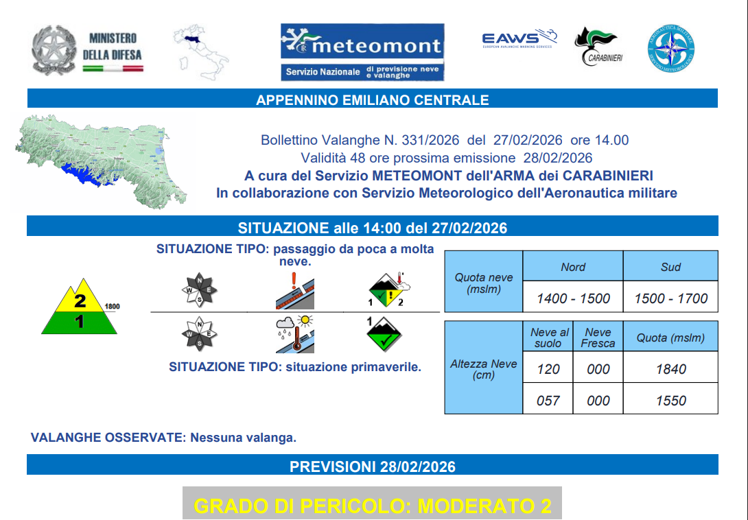 Importante: il bollettino valanghe deve essere letto tutti i giorni, prima di ogni escursione in quota. Con le condizioni previste è assolutamente necessario essere completamente consapevoli della situazione di avere un equipaggiamento completo di ramponi, piccozza, casco, oltre che del dispositivo Artva con pala e sonda.