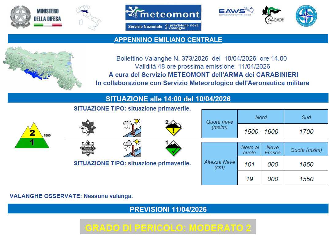 La quota neve si attesta a 1400 m nel modenese, 1600 m nel reggiano. Nei versanti sud la neve è praticamente scomparsa.