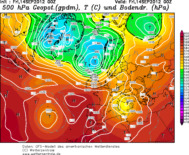Venerdì 14 settembre, ore 00.00: vortice depressionario in piena azione sul centro-sud Italia. Fresche correnti “tese” da Nord-Est sulle regioni settentrionali.