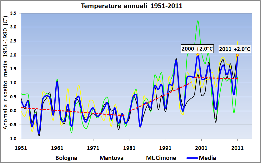 Grafico 2: andamento delle temperature annuali dal 1951 al 2011