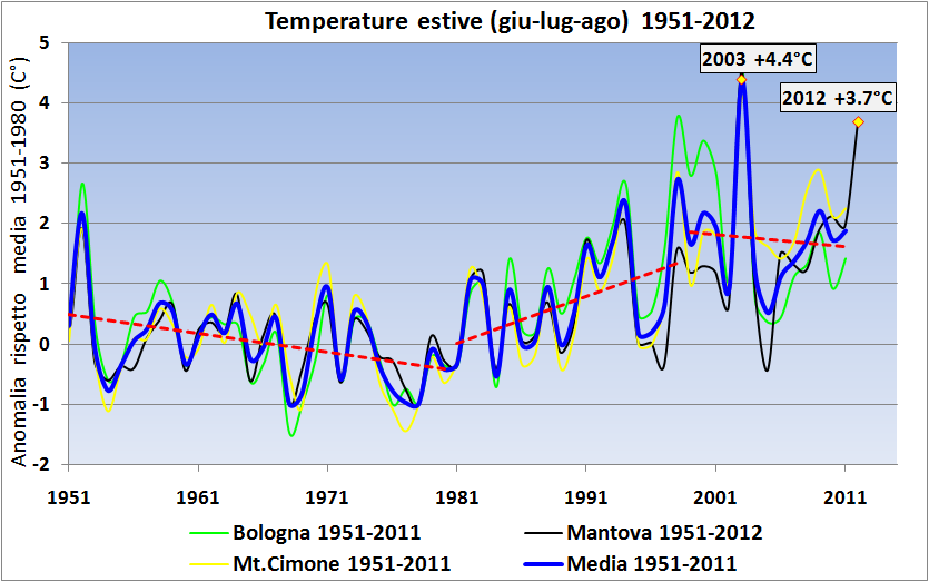 Grafico 1: andamento delle temperature estive dal 1951 al 2012
