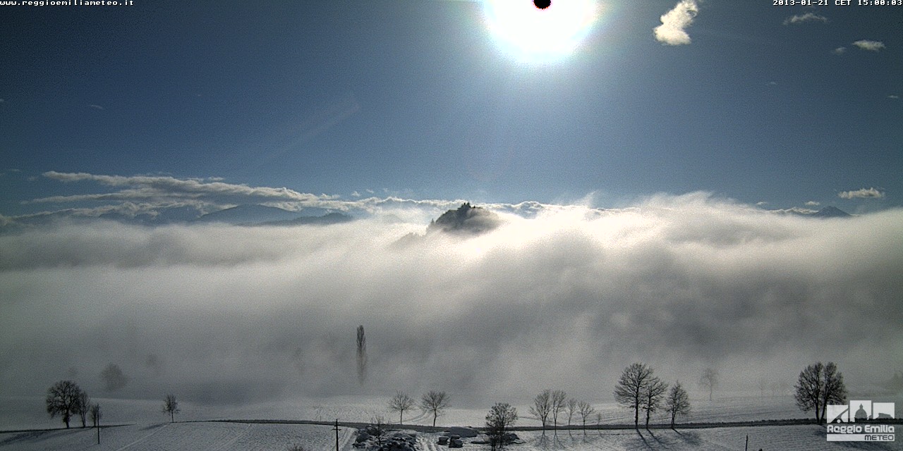 Della stessa webcam di Felina, uno scatto della giornata di ieri, lunedì 21, quando il transito delle nubi ha creato una straordinaria varietà di paesaggi. Come per tutte le altre date desiderate, cliccando sul tab Archivio potete accedere ai video in time lapse e agli scatti delle 24 ore.